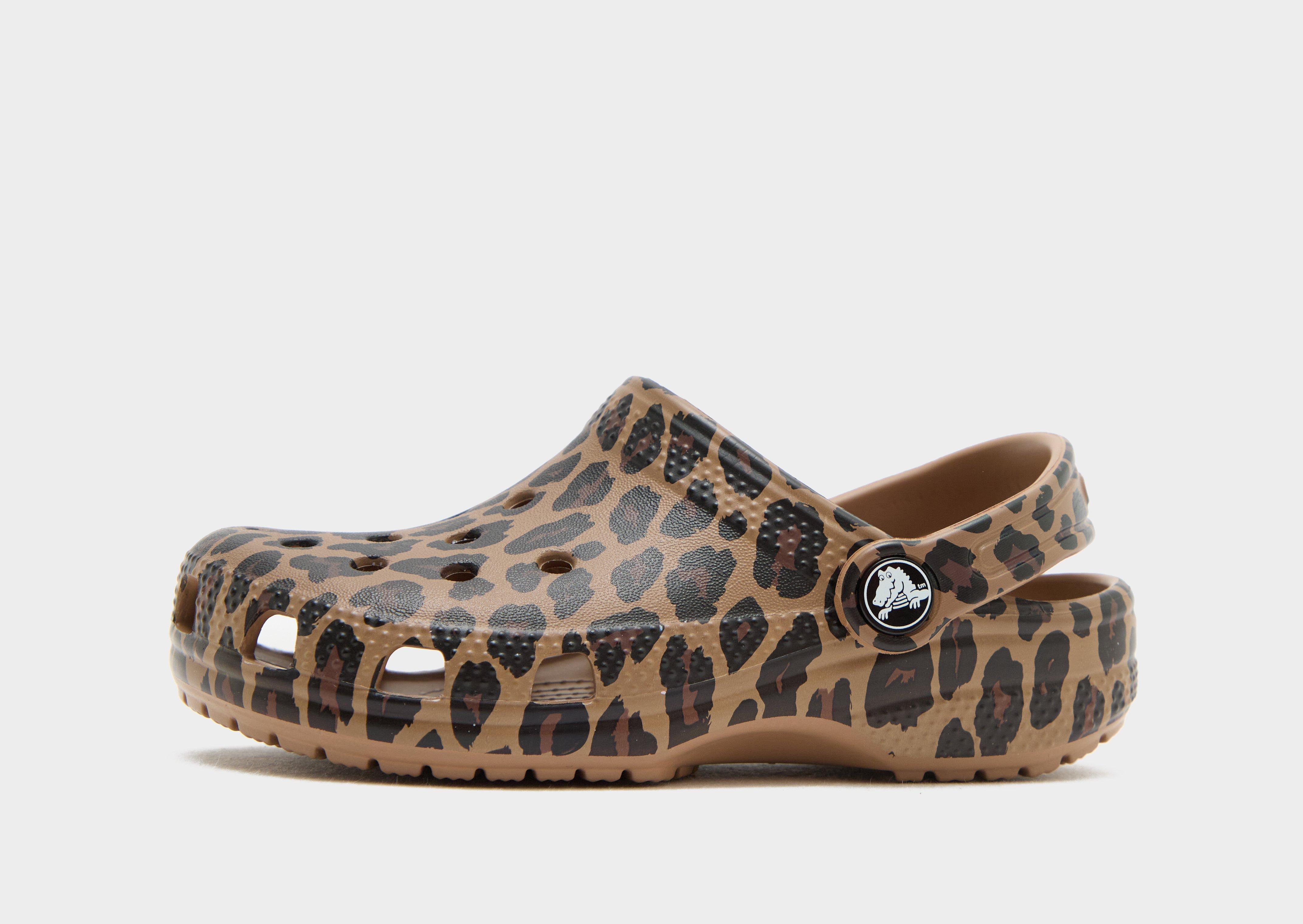 Laat hun wilde kant zien met deze Classic Clog sandalen voor kinderen van Crocs. Een luipaardprint siert het Croslite bovenwerk en de draaibare hielband. Ademende patrijspoorten houden hun voeten koel, terwijl het voetbed met dubbele dichtheid voor demping zorgt. Afgewerkt met een getextureerde buitenzool en een ton-sur-ton Crocs-merklogo. | Let op: Crocs valt breed uit. Als je smalle voeten hebt, raden we je aan een maat kleiner te nemen. Crocs wordt geleverd met de Amerikaanse maat in reliëf op de zool.