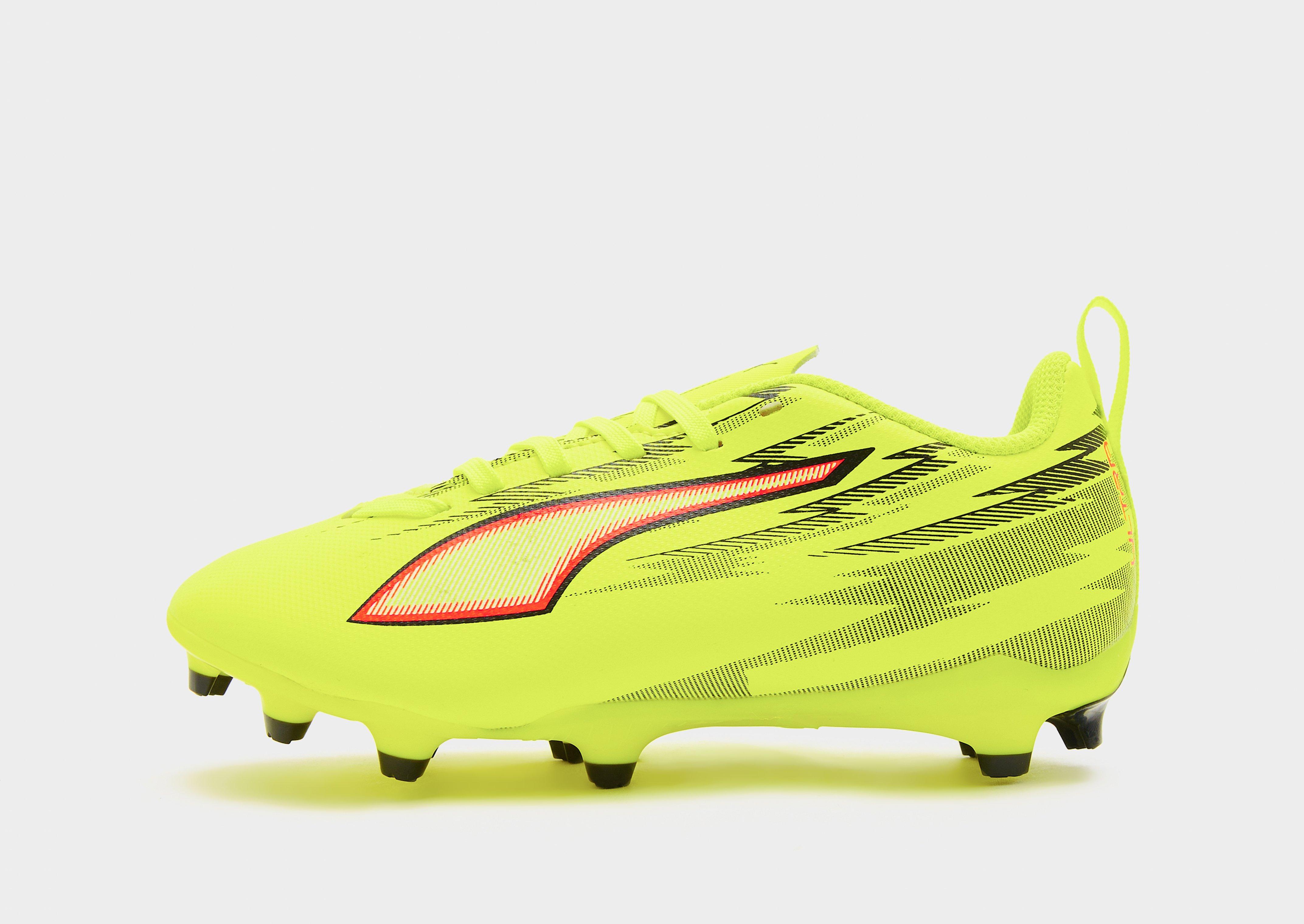 Maak ze klaar voor belangrijke wedstrijden met deze PUMA ULTRA 6 PLAY FG voetbalschoenen voor kinderen. Deze gestroomlijnde voetbalschoenen in een felgele kleur hebben een synthetisch bovenwerk met een textuurafwerking voor balcontrole. Met veters voor een nauwsluitende, veilige pasvorm en een noppenzool voor grip op het veld, zijn ze voorzien van PUMA-branding.
