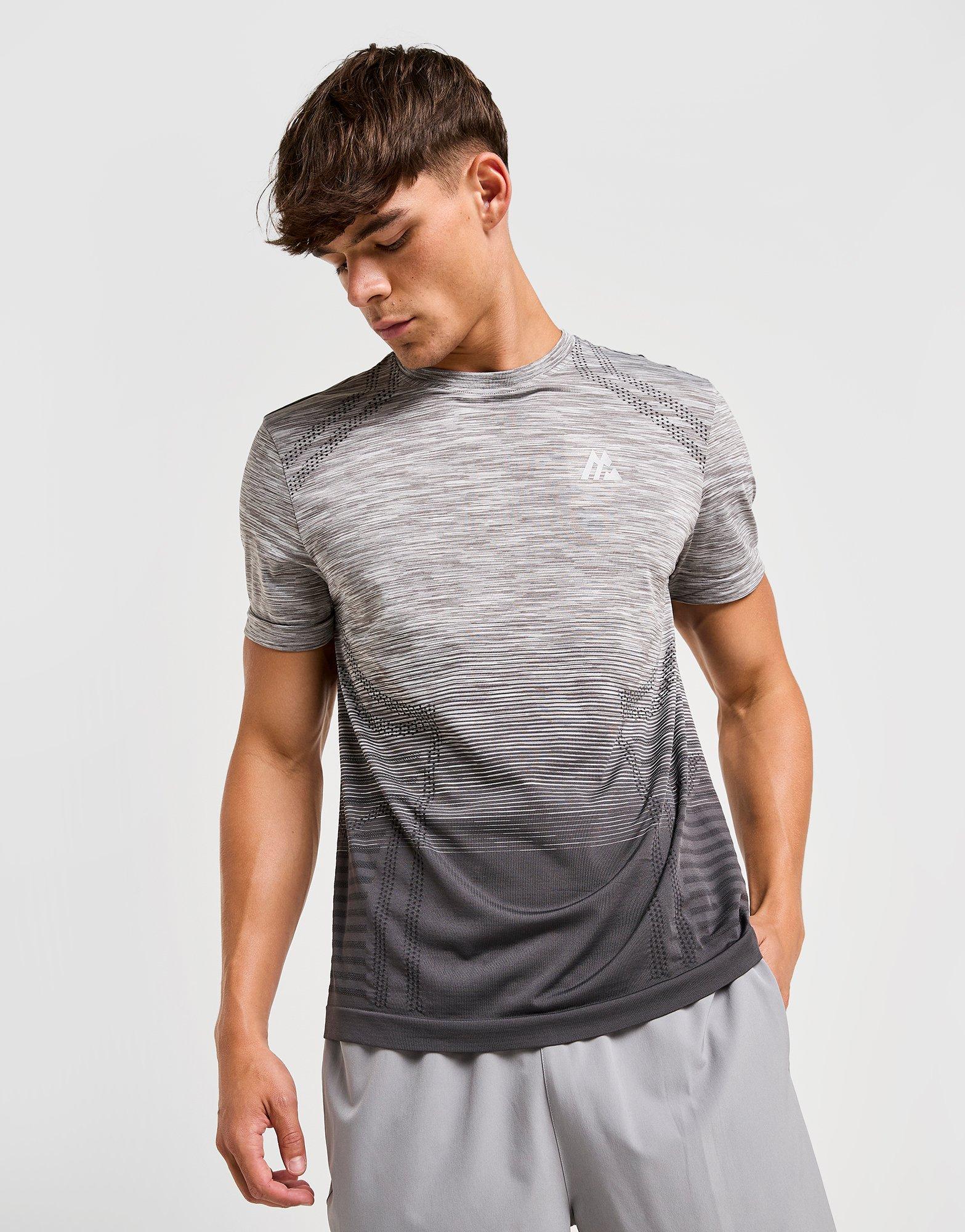 Ga voor je doelen. Dit Vector Seamless T-shirt voor heren van Montirex is gemaakt om in te bewegen. Het is licht en rekbaar, ademend en heeft een strakke pasvorm voor een gestroomlijnd gevoel. Verkrijgbaar in grijs en zwart, afgewerkt met reflecterende details om je zichtbaar te houden. Machinewasbaar | Ons model is 1,88 m lang, heeft een borstomvang van 94 cm en draagt maat M.