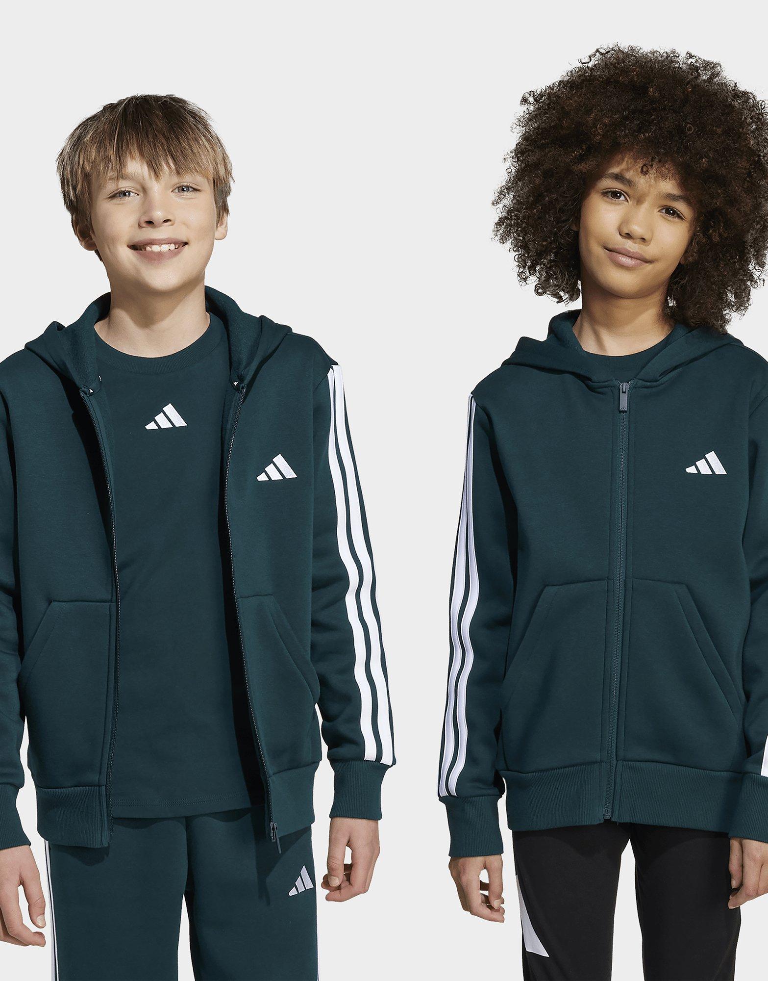 Deze junior adidas hoodie van zachte fleece is een onmisbare laag voor drukke dagen en houdt je comfortabel, waar je ook naartoe gaat. Geribbelde boorden maken 'm nog behaaglijker, en met de lange ritssluiting pas je naar behoefte de bedekking aan. Of je nu op weg bent naar school of met vrienden chilt, deze hoodie biedt sportieve stijl en casual comfort.
