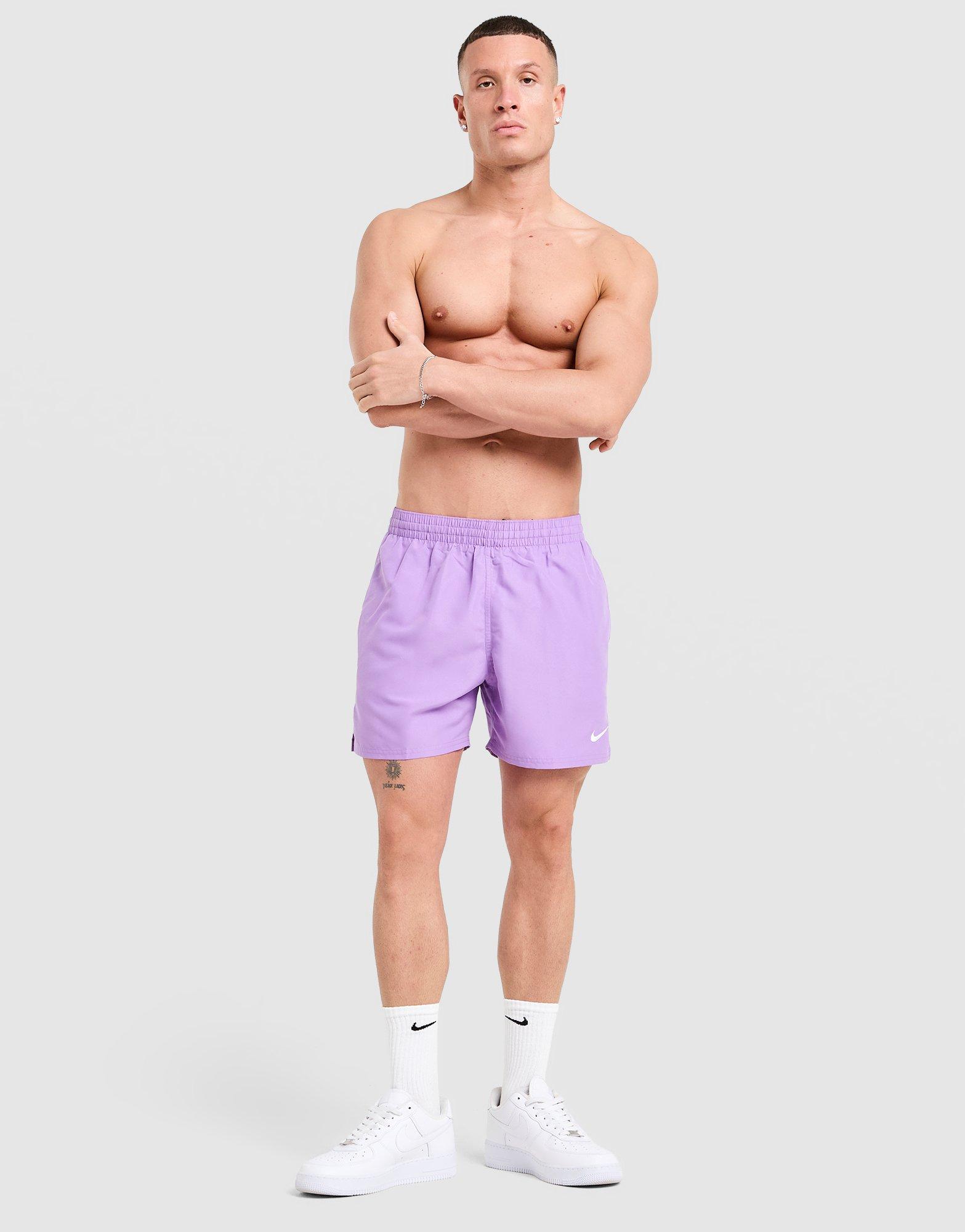 Essentiële zwemkleding van Nike. Deze paarse Core 5" zwemshorts voor heren zijn gemaakt van een gladde, sneldrogende stof. Ze hebben een luchtige mesh voering en een elastische tailleband met trekkoord voor een goede pasvorm. Met zakken aan beide zijden en het Nike-logo boven de zoom zijn ze afgewerkt. Machinewasbaar.