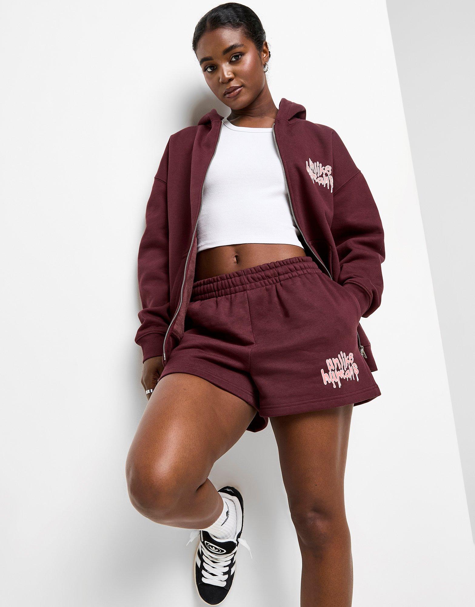 De zon schijnt, tijd om te ontspannen. Doe het in JD-exclusieve stijl met deze Ice Cream Shorts voor dames van Unlike Humans. Deze short met middelhoge taille, verkrijgbaar in Red Mahogany, heeft een elastische tailleband met een trekkoord om hem op zijn plaats te houden. Hij is gemaakt van fleecestof van katoen en polyester voor een relaxt en comfortabel gevoel. Afgewerkt met steekzakken in de zijnaden en een op ijsjes geïnspireerde Unlike Humans-branding. Machinewasbaar. | Ons model is 1,72 m lang en draagt maat S.