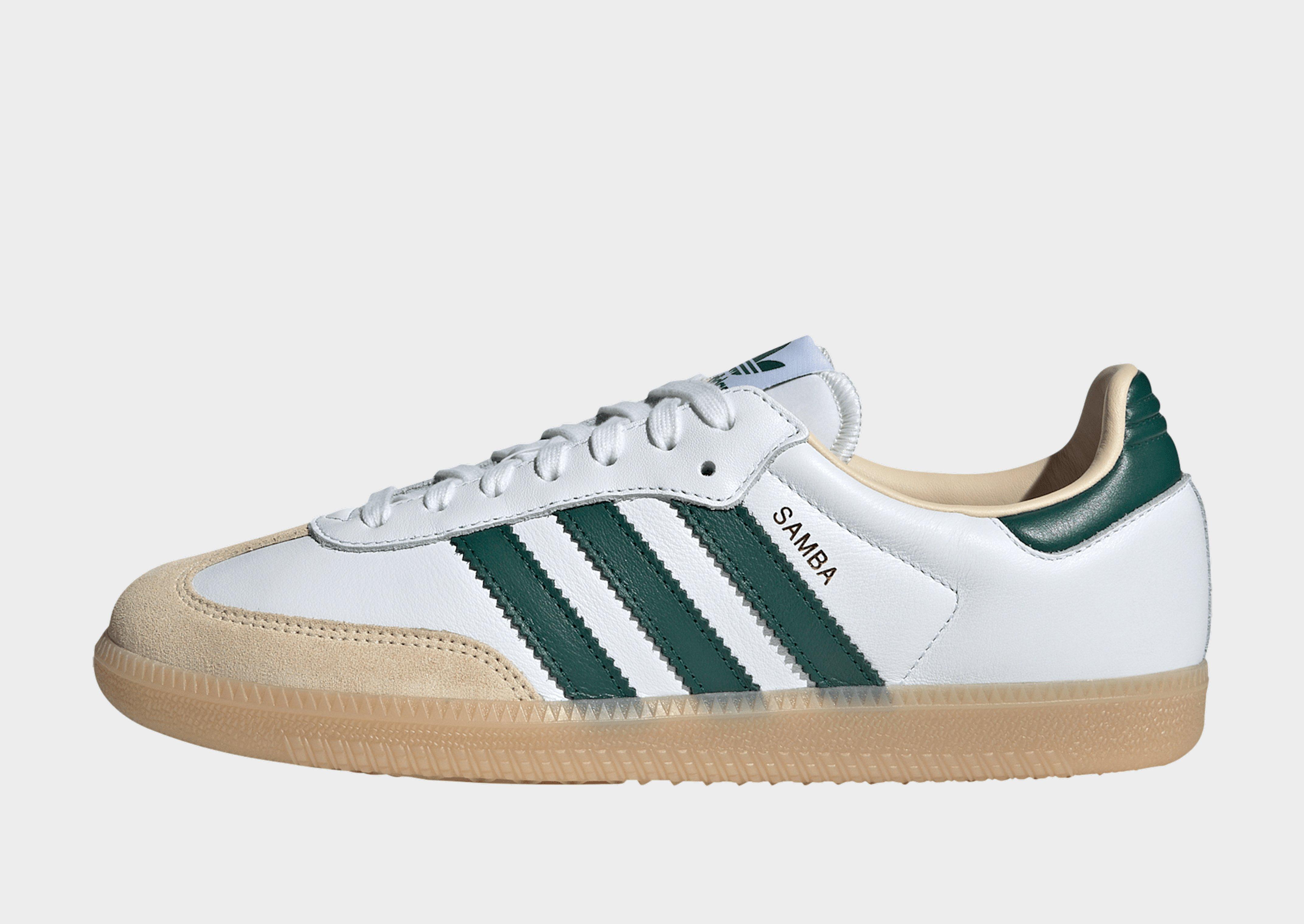 De adidas Samba OG schoen heeft zich van de jaren 50 tot nu een weg gebaand, van de voetbalvelden tot de straat. Deze versie blijft trouw aan het oorspronkelijke design, maar wel met een frisse twist. Het gladde leren bovenwerk is afgewerkt met een tong van zacht textiel en een labelvlaggetje. De karakteristieke suède T-neus en het gladde leren hielpand geven de schoen een klassieke look & feel, en de rubberen loopzool houdt je met beide benen op de grond.