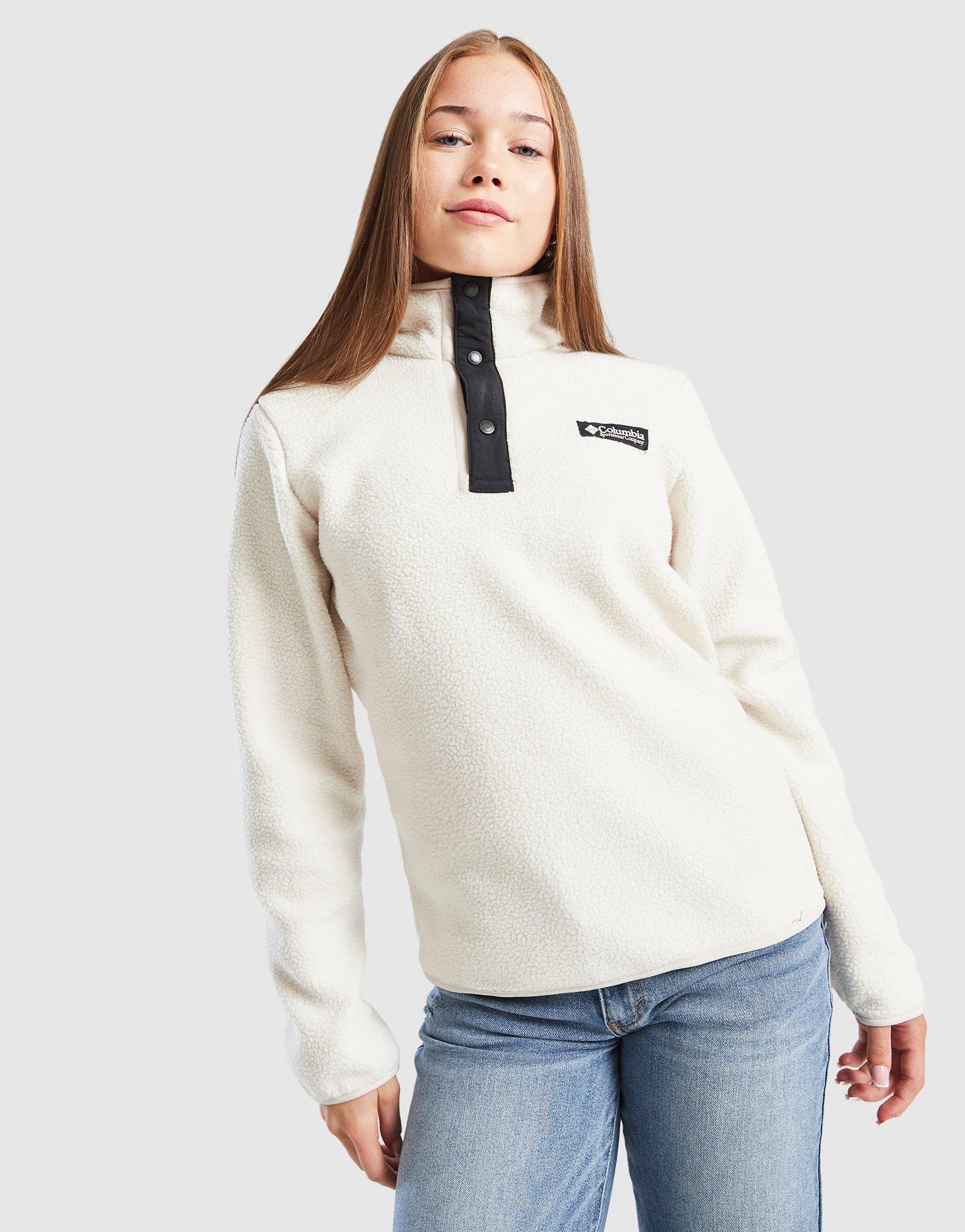 Draag laagjes. Versla de kou. Deze junior Helvetia Fleece van Columbia voor meisjes is gemaakt van zachte, donzige polarfleece. Hij heeft een drukknoopsluiting om de bedekking aan te passen. En een elastische band rond de boorden om de vorm te behouden. Het Columbia-merk maakt het helemaal af. Machinewasbaar.