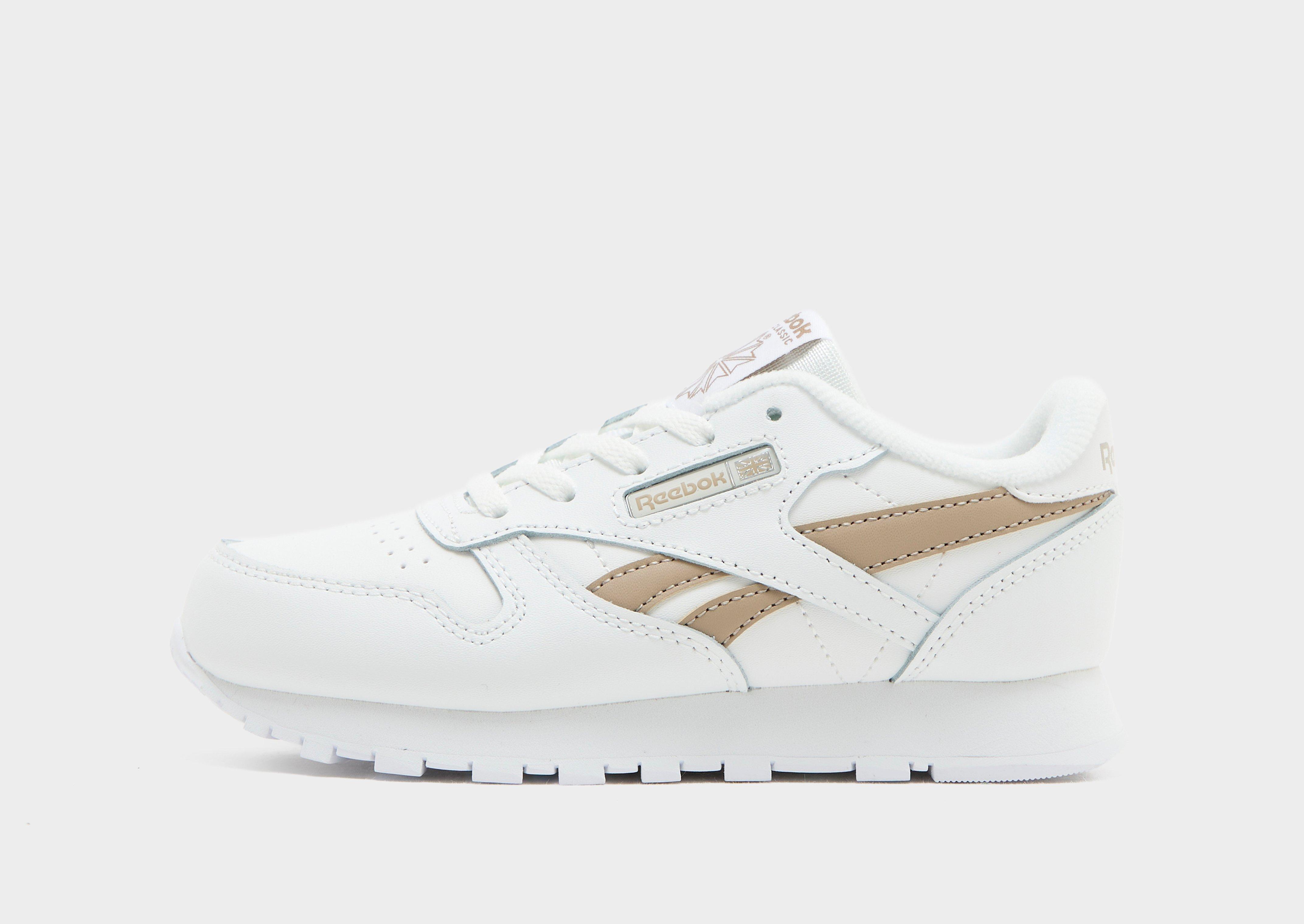 Geef hun garderobe een retro-uitstraling met deze klassieke leren sneakers van Reebok voor kinderen. Exclusief verkrijgbaar bij JD, met een glad bovenwerk van gecoat leer. De zachte schuimvulling zorgt voor optimale demping. De rubberen buitenzool biedt goede grip. Afgewerkt met het kenmerkende Reebok-logo.