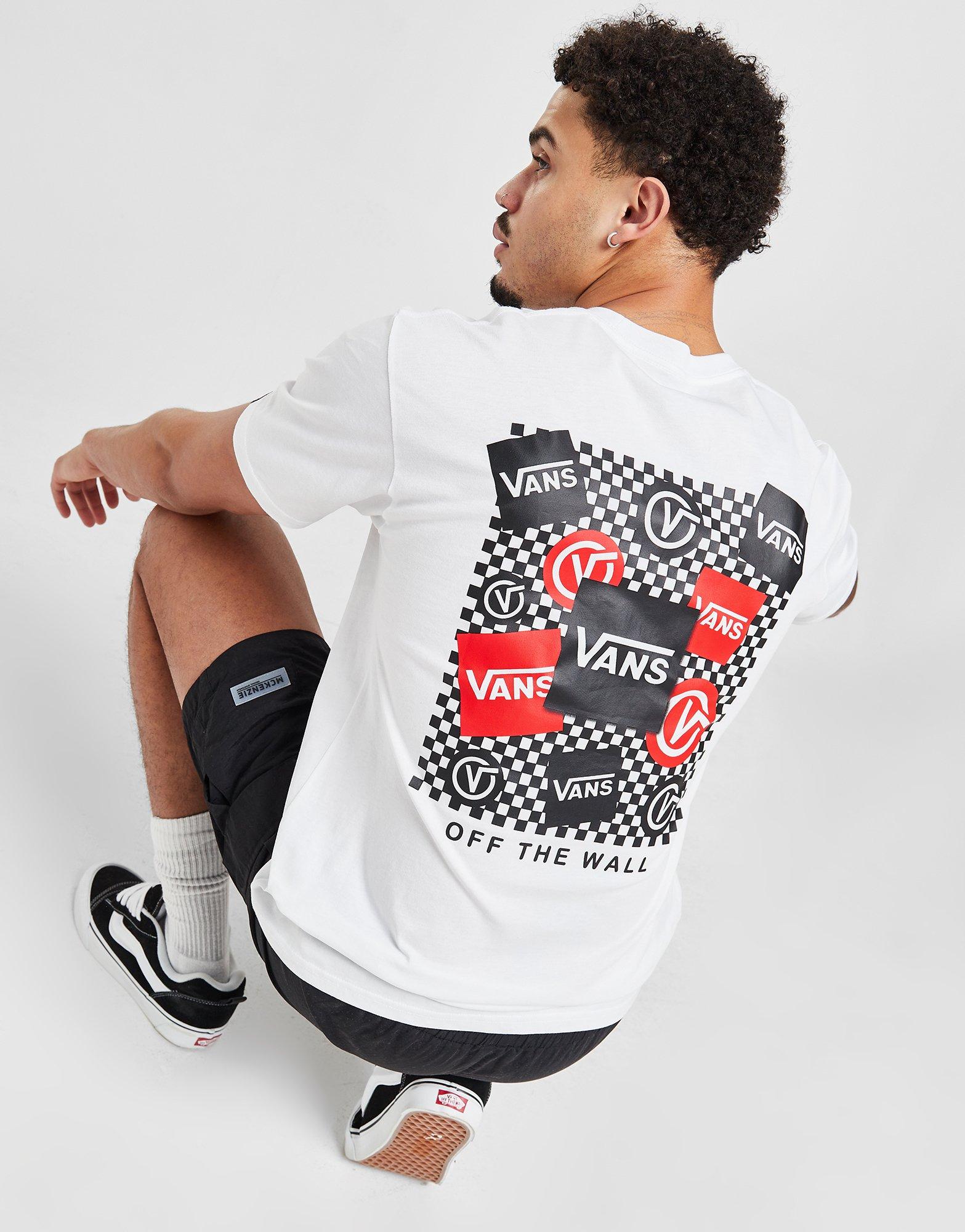 Bereid je voor op zonnige dagen met dit Multi Logo T-shirt voor heren van Vans. Dit klassieke T-shirt in een witte colourway heeft een geribbelde ronde hals en korte mouwen. Het is gemaakt van lichtgewicht katoen voor een zacht en comfortabel gevoel. Met een kenmerkend Vans-dooslogo op de borst gestempeld, is het afgewerkt met gestapelde Vans-branding en een checkerboard-print op de achterkant. Mag in de wasmachine. | Ons model is 6'1" met een borstomtrek van 37,5" en draagt maat medium.