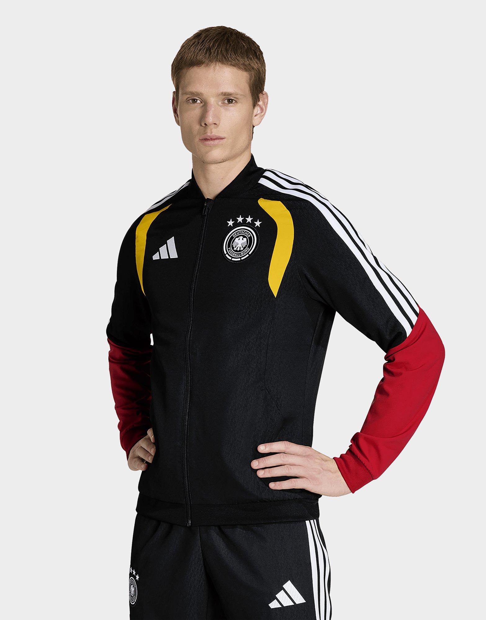 Stap vol vertrouwen het veld op in het Duitsland 26 Tiro Presentation jack. Dit jack is geïnspireerd op ons voetbal-DNA en combineert high-performance materialen met een modern ontwerp om er scherp uit te blijven zien op en naast het veld.De strakke pasvorm van dit jack omsluit je lichaam voor een gestroomlijnd silhouet, terwijl je 't dankzij de ritssluiting gemakkelijk als extra laag kunt dragen, wat 't een geweldige keuze maakt voor snel omkleden voor of na de wedstrijd.De lichtgewicht geweven stof voelt comfortabel aan. En met de iconische adidas merkdetails, inclusief een zigzag-geborduurd logo en 3-Stripes-tape, vertegenwoordig je het team in stijl.Deze jas, met veel aandacht voor detail, is gemaakt voor wie prestaties en stijl eist. Of je nu je warming-up of cooling-down doet, houd hem bij de hand om je passie voor voetbal te laten zien.