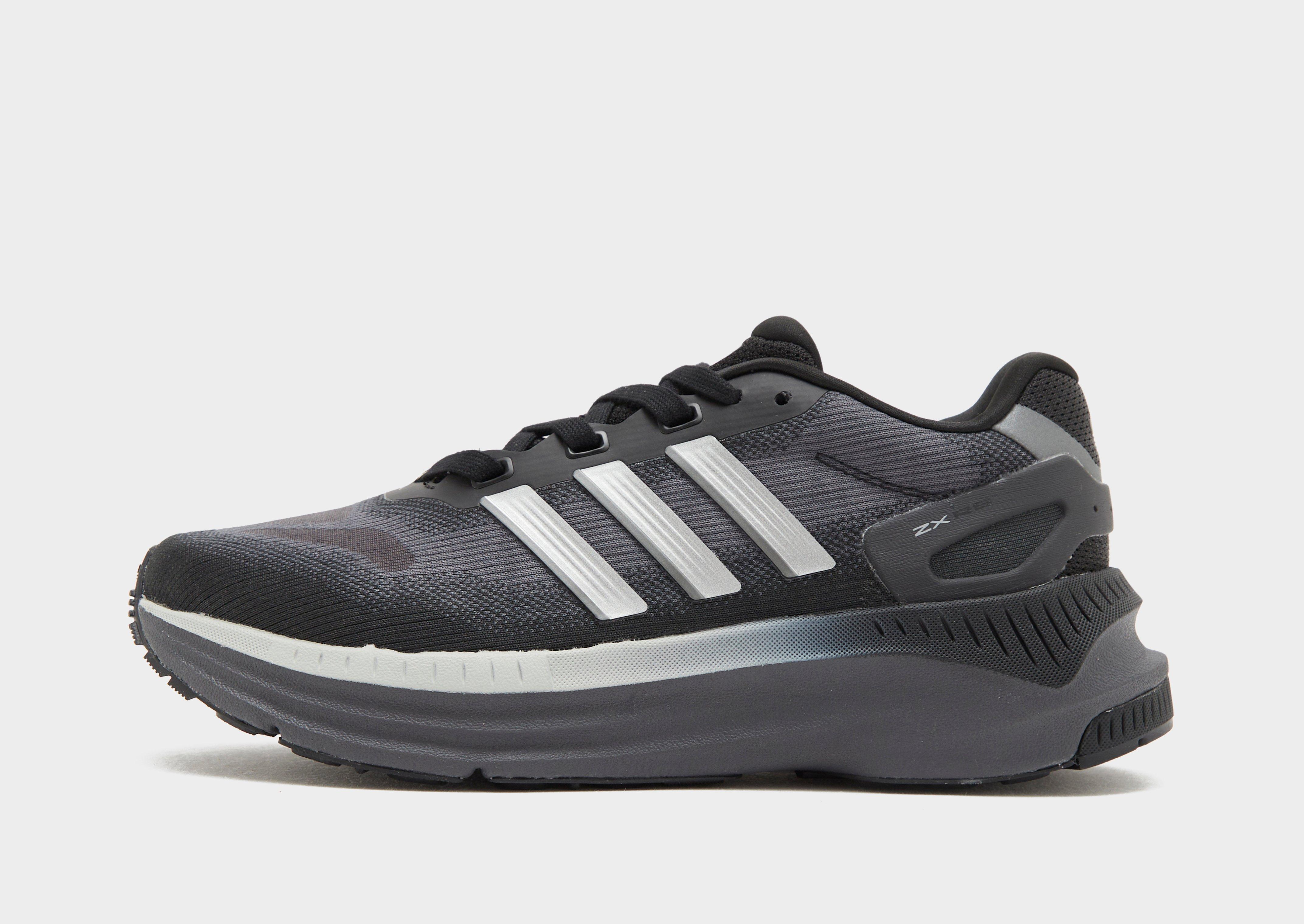 Een klassieker krijgt een nieuwe interpretatie met deze junior ZX RS sneakers van adidas Originals. Deze hardloopschoenen, uitgevoerd in een zwarte kleurstelling met metallic zilveren en carbonaccenten, hebben een luchtig bovenwerk van technisch mesh met synthetische elementen voor duurzaamheid. Ze hebben een vetersluiting met zachte vulling rond de enkelkraag voor een goede grip en een superzachte middenzool van schuim voor sponzig comfort. Ze hebben een gripvaste rubberen buitenzool voor grip en zijn afgewerkt met de iconische ZX hielclip en het kenmerkende adidas Originals-logo. | JQ1203