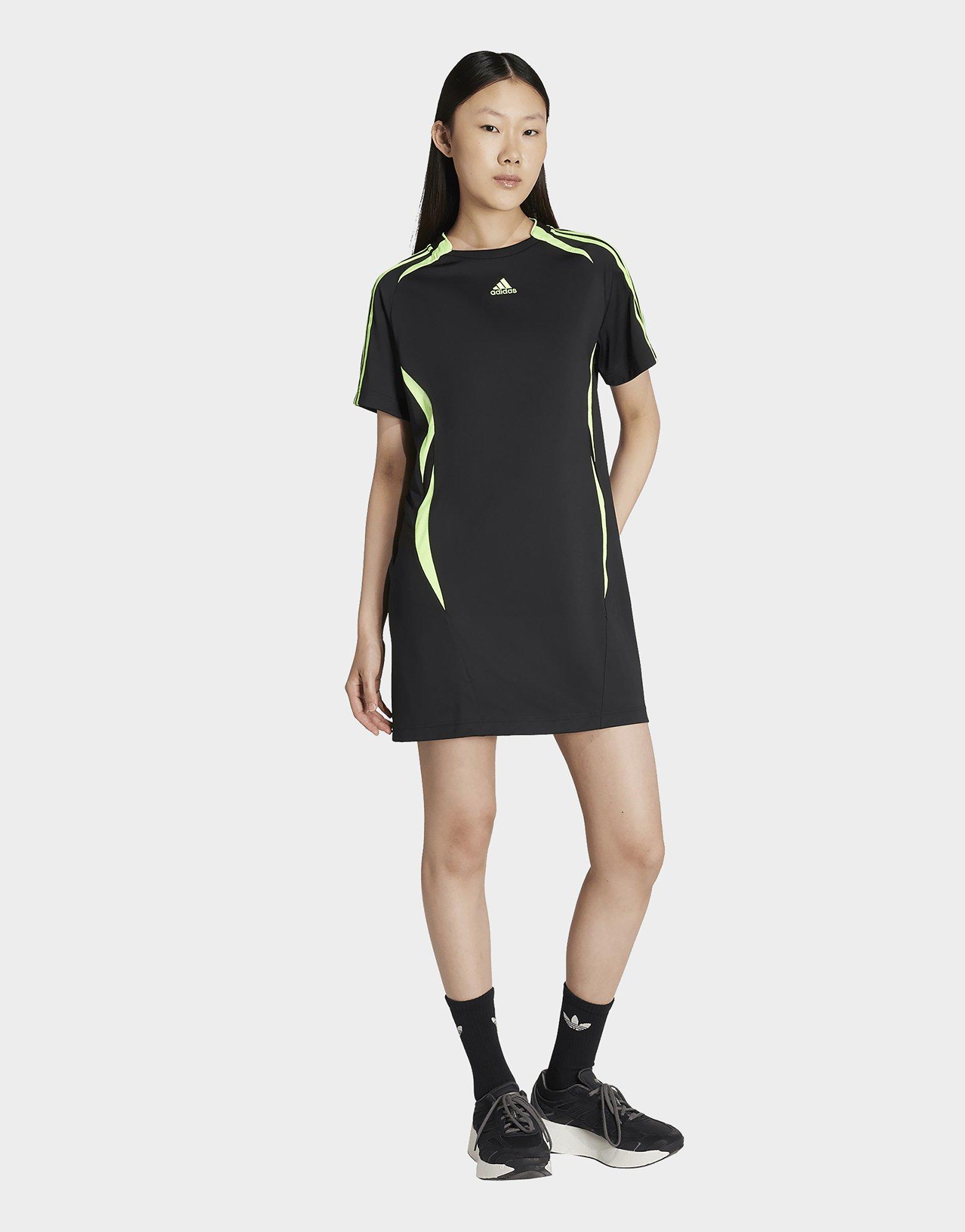 Met inspiratie van voetbal-looks uit het begin van de 21ste eeuw vernieuwt deze adidas T-shirtjurk een patroon uit het archief voor een frisse, maar toch vertrouwde look. De gebreide stof is zacht en comfortabel, perfect om thuis in te relaxen of buiten de deur avonturen te beleven. Teamgeist-graphics brengen een eerbetoon aan de prachtige sport.